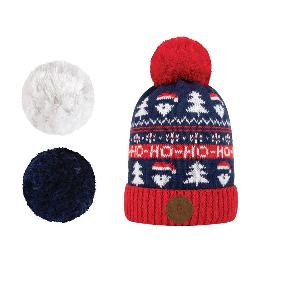 Le bonnet éco-responsable Cabaia à pompons interchangeables grâce à un aimant pour assortir votre bonnet à vos tenues. Un bonnet tricoté en matières recyclées.