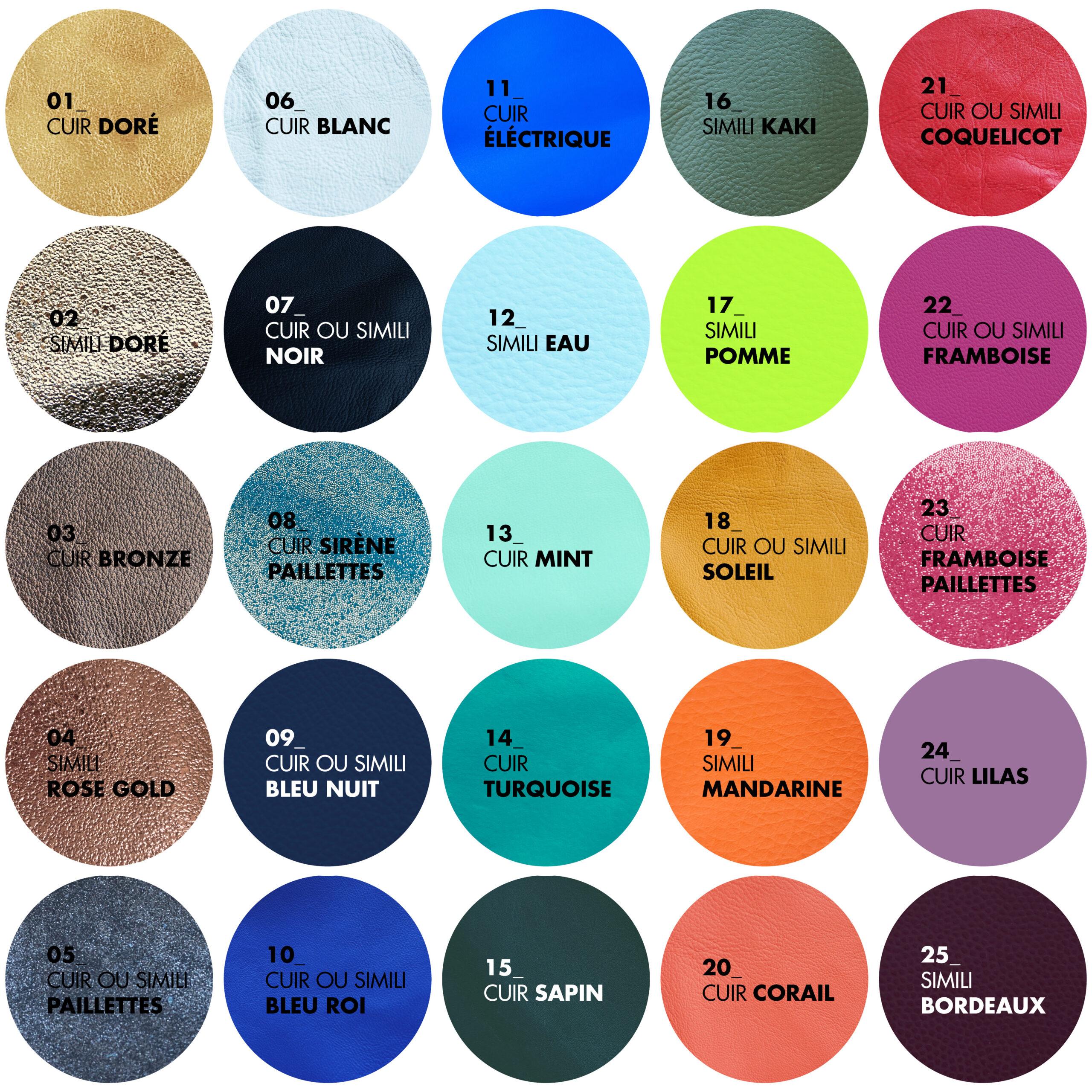 Chaque paire de boucles d’oreilles est unique et ne sera donc pas exactement la même que celle sur la photo. Le cuir étant une matière complexe à prendre en photo il se peut qu’il y ait une différence entre votre écran et le cuir reçu.