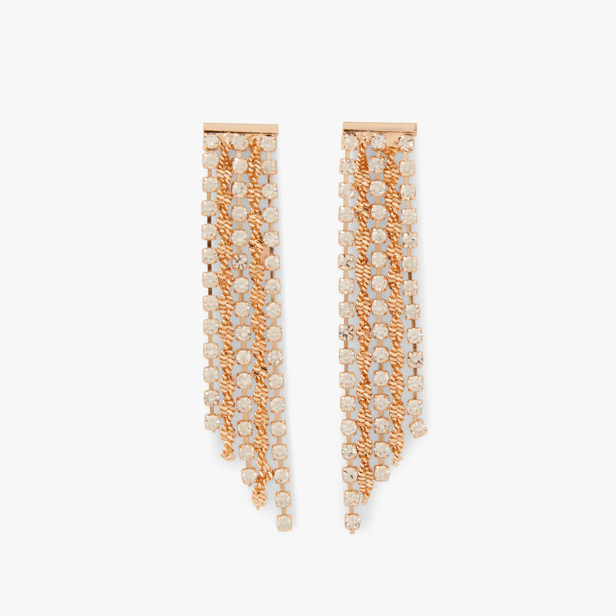 - Boucles d’oreilles dorées pendantes multi rangs avec strass avec petites chaines