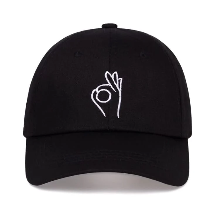 La Casquette Broderie Ok, une casquette ornée d’un signe de la main faisant « OK », apportant une touche décontractée et expressive à votre style.