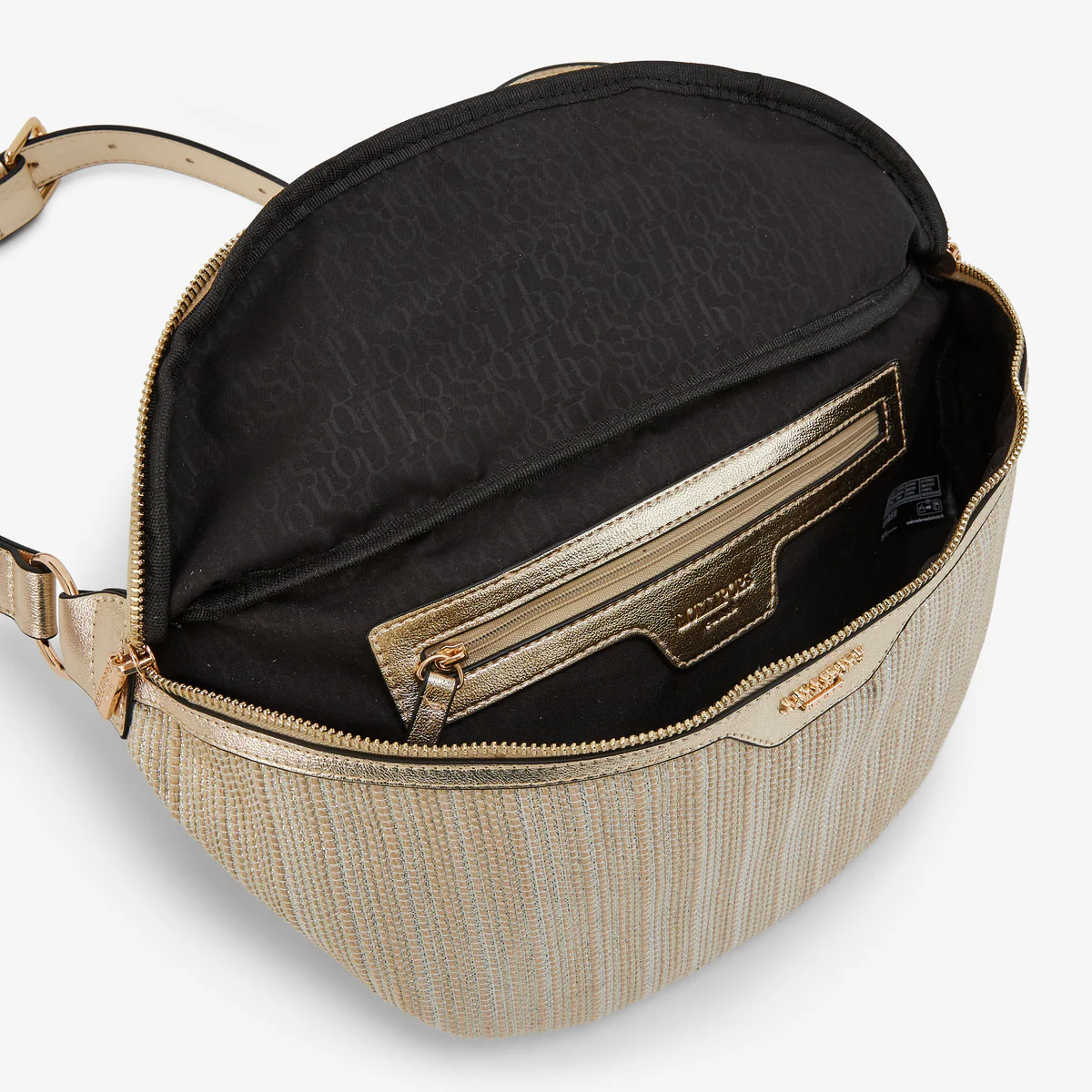 - Sac banane doré en tissu pailleté