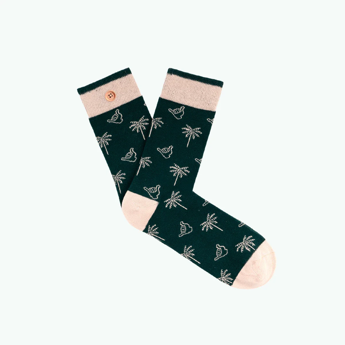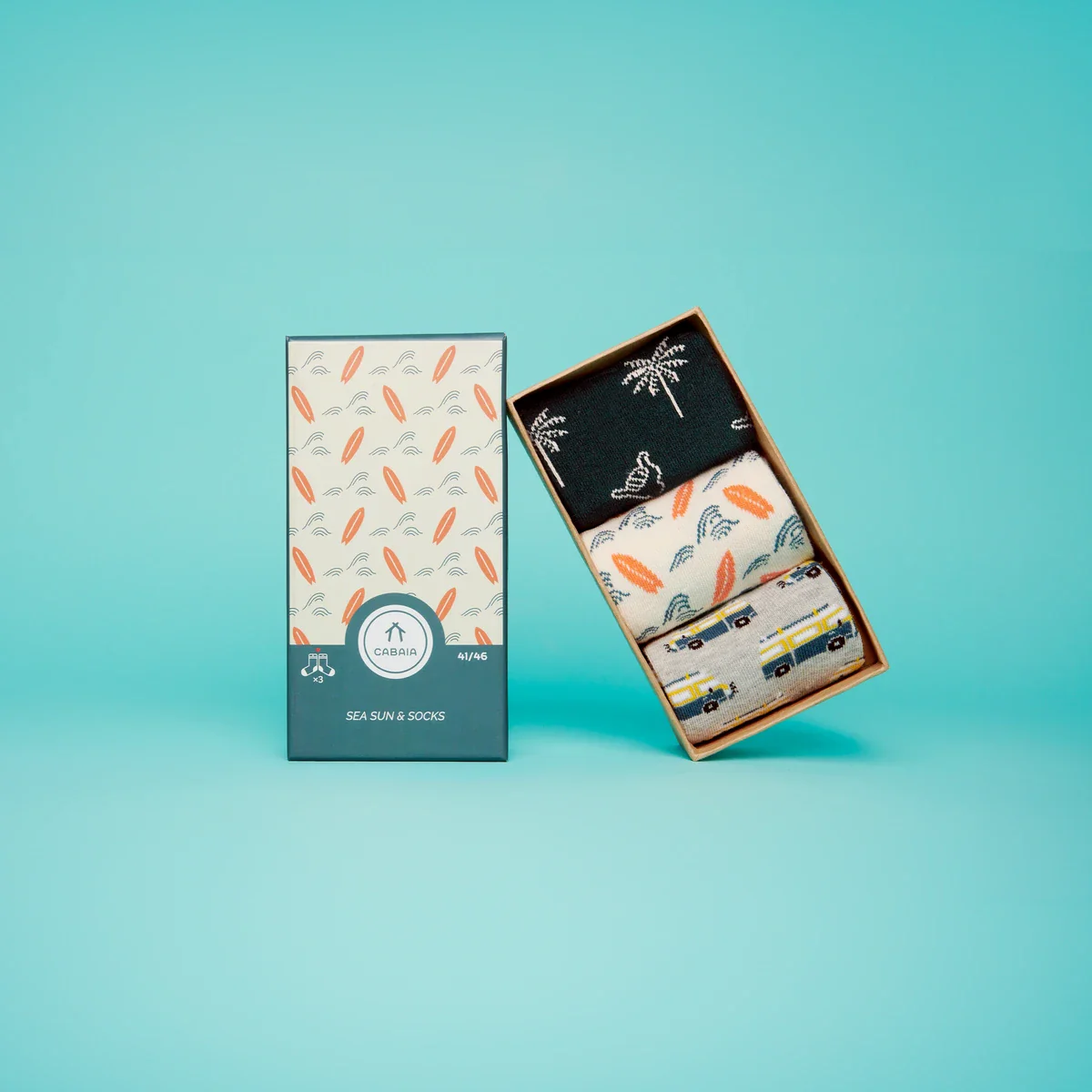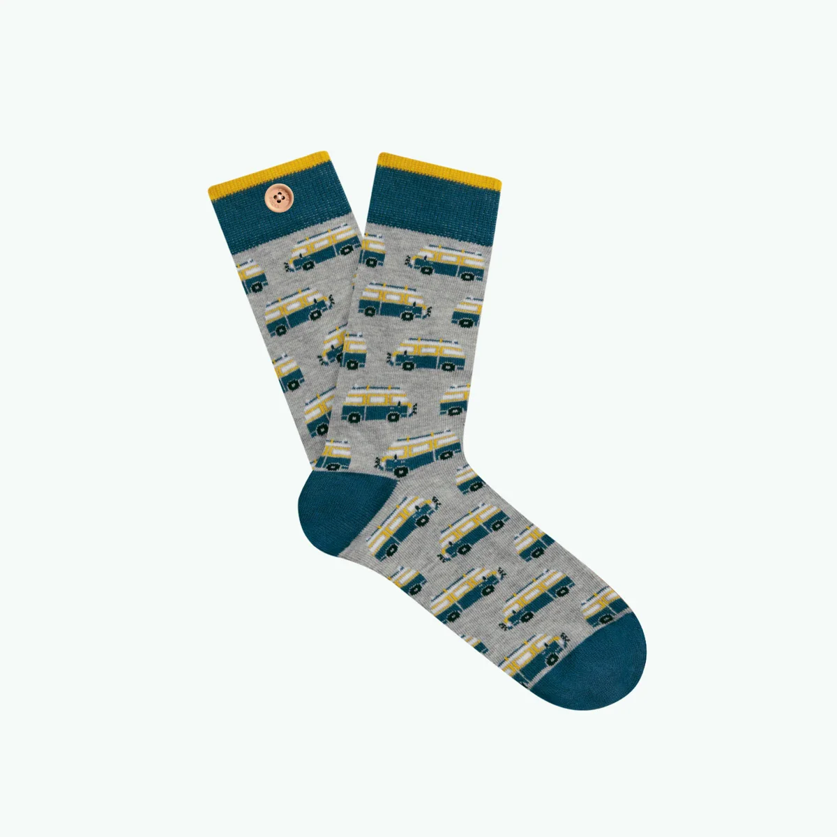 Pack de trois paires chaussettes inséparables avec un bouton en bois, pour homme en taille 41/46. Découvrez les chaussettes colorées de marque Cabaia.