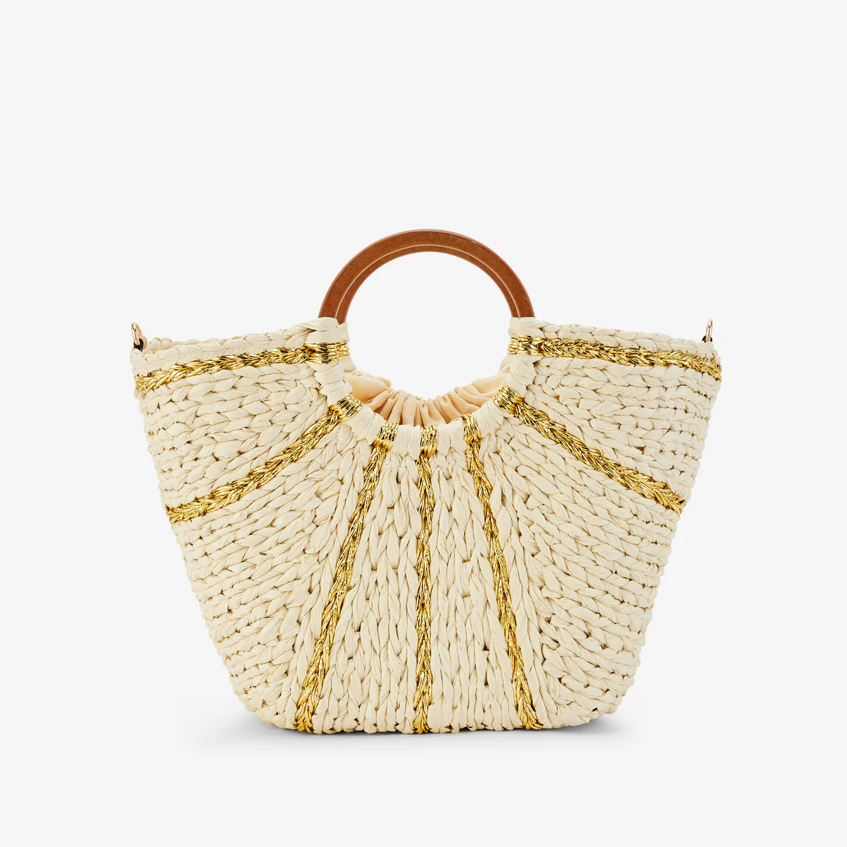 - Grand panier en paille beige avec détails dorés