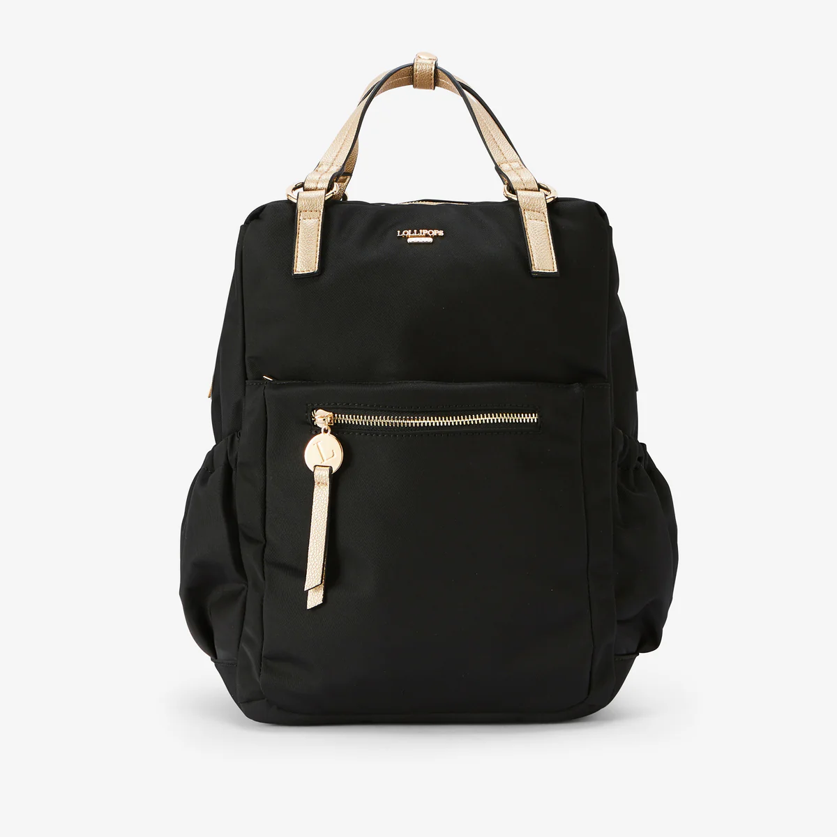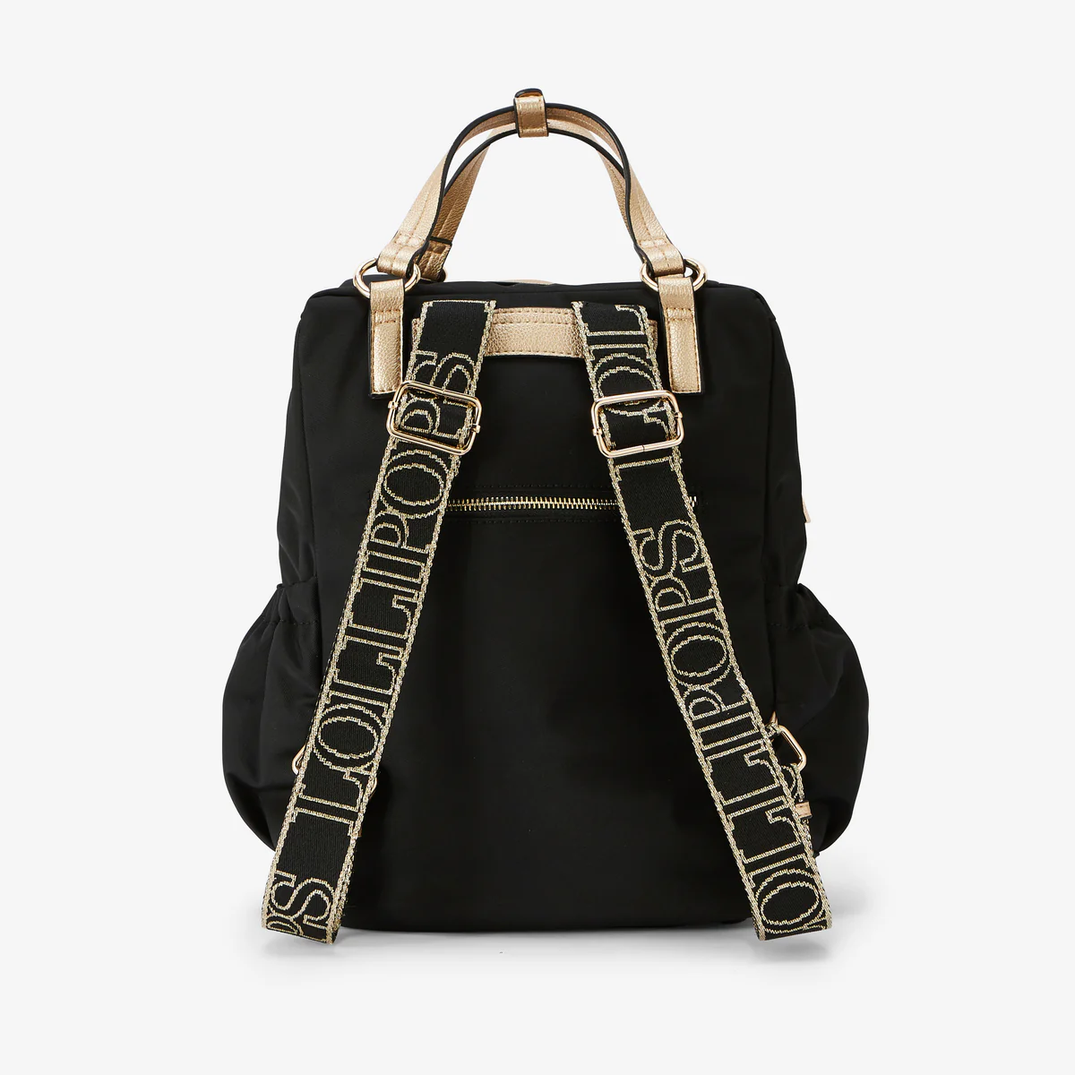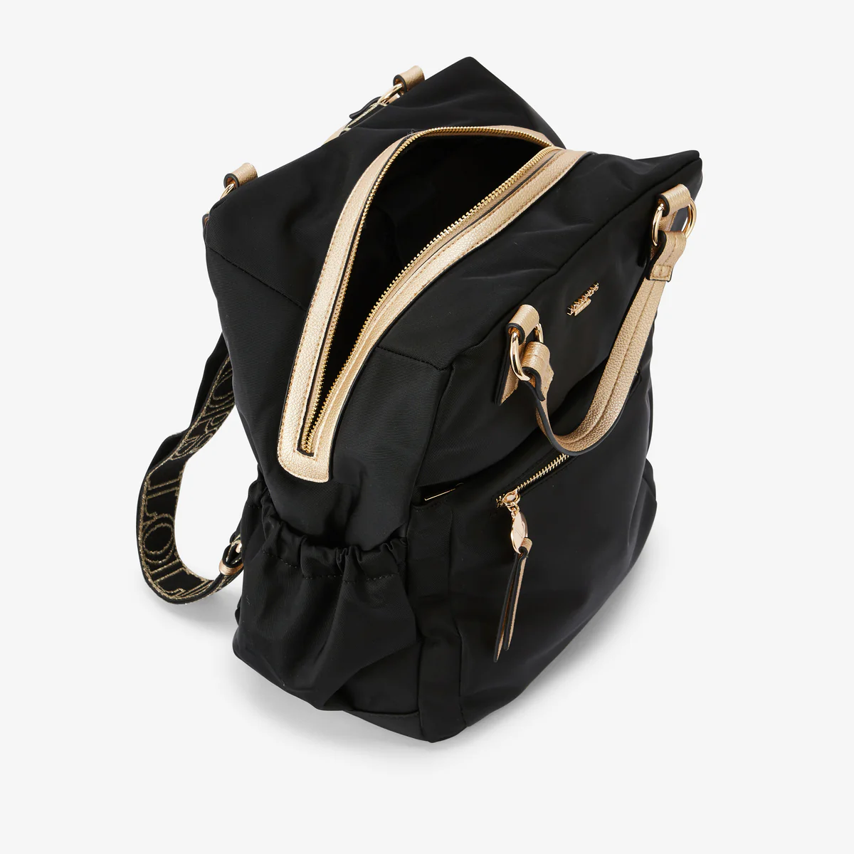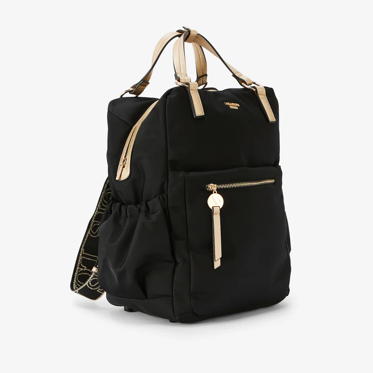 - Sac à dos noir en nylon à détails en simili cuir doré