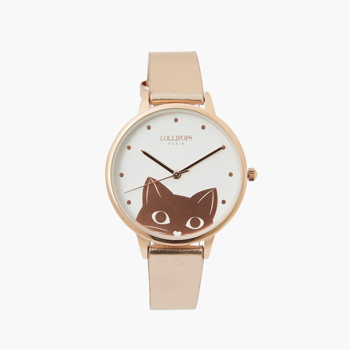 - L’intérieur du cadran est orné d’une tête de chat et du logo Lollipops.