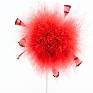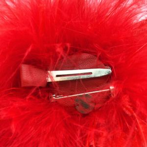 Pince-broche en plumes de marabout et plumes de faisan rouge; Fait mains à Paris.