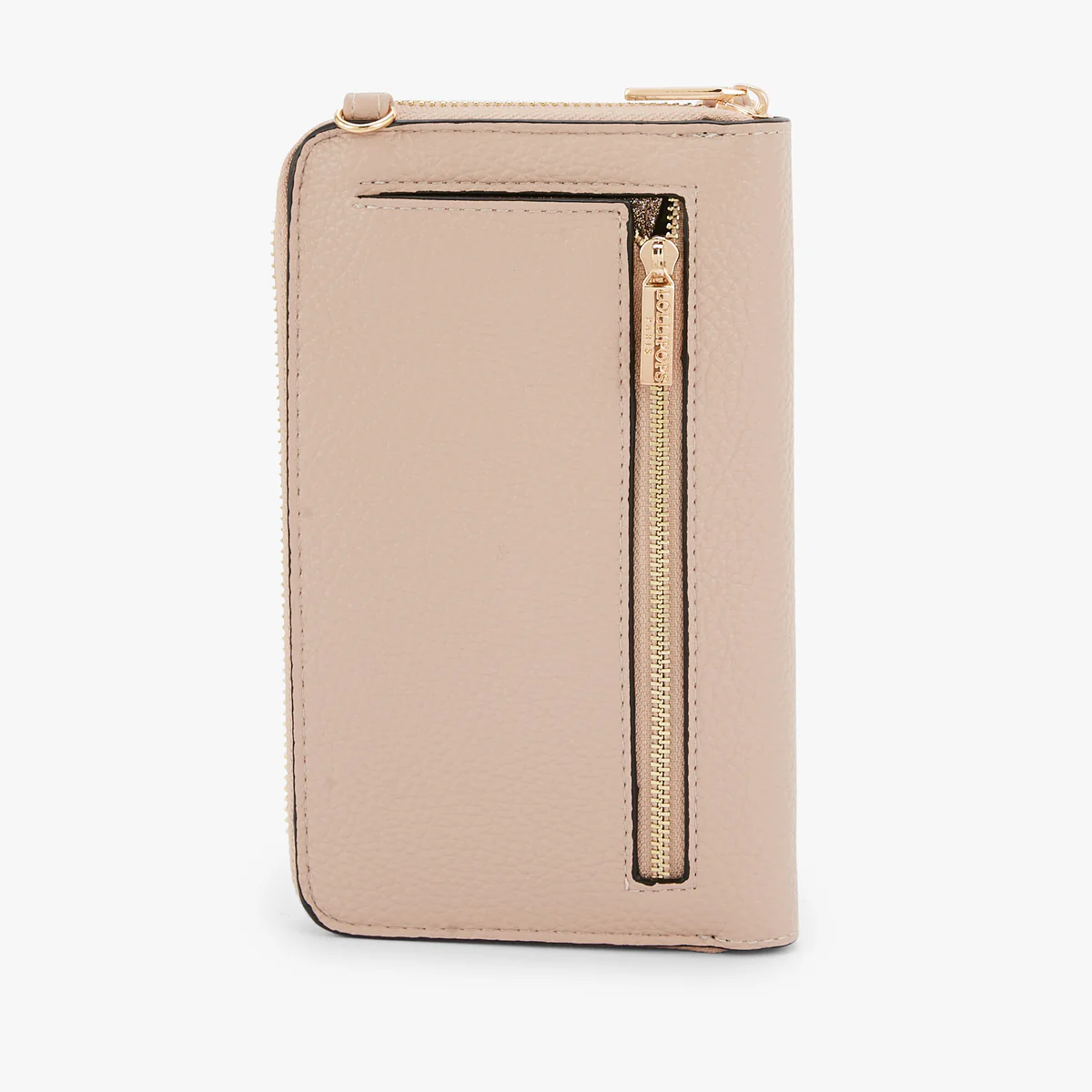 - Pochette de téléphone taupe en simili cuir effet grainé