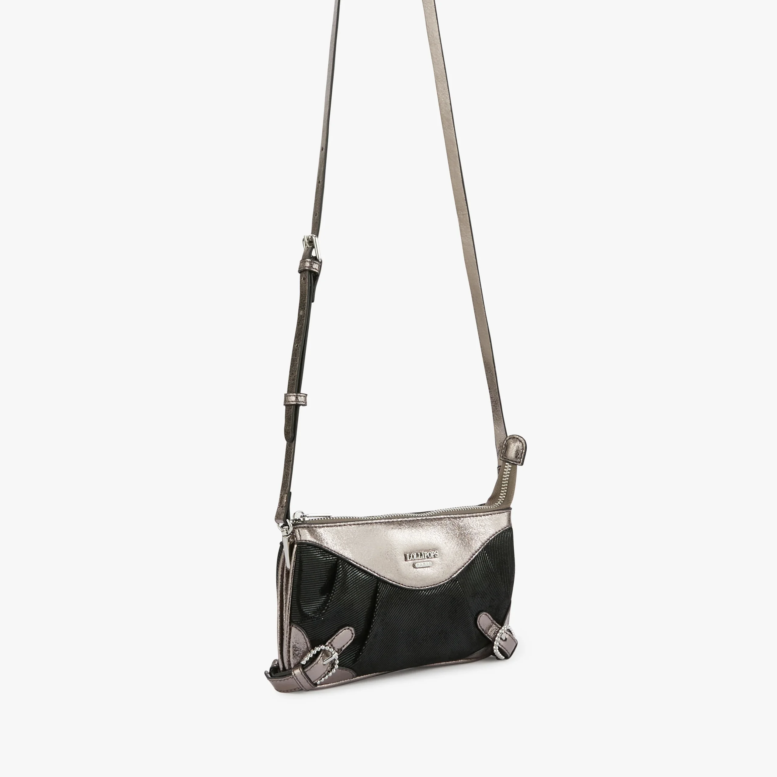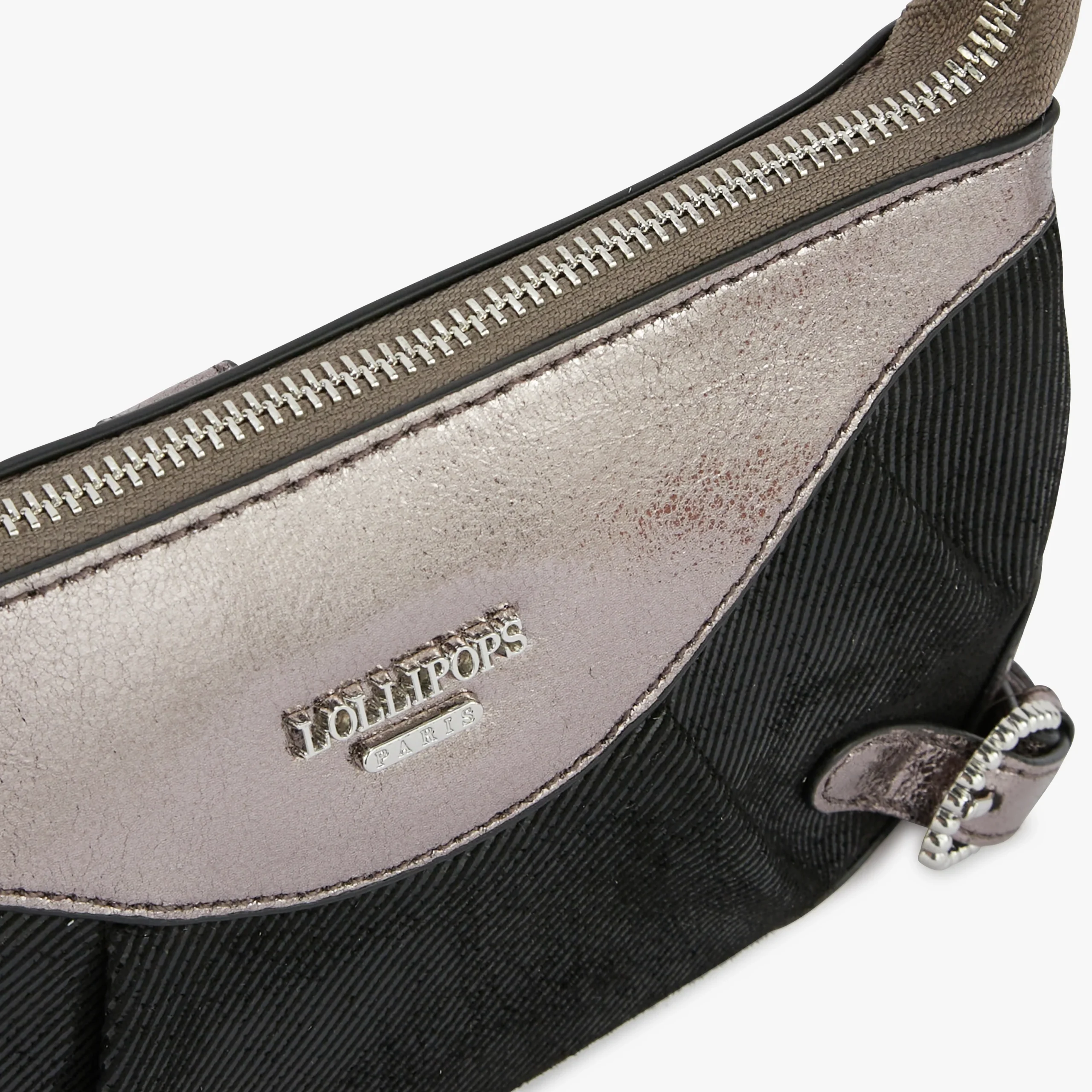 - Porte-passeport en simili cuir irisé et en tissu foil noir
