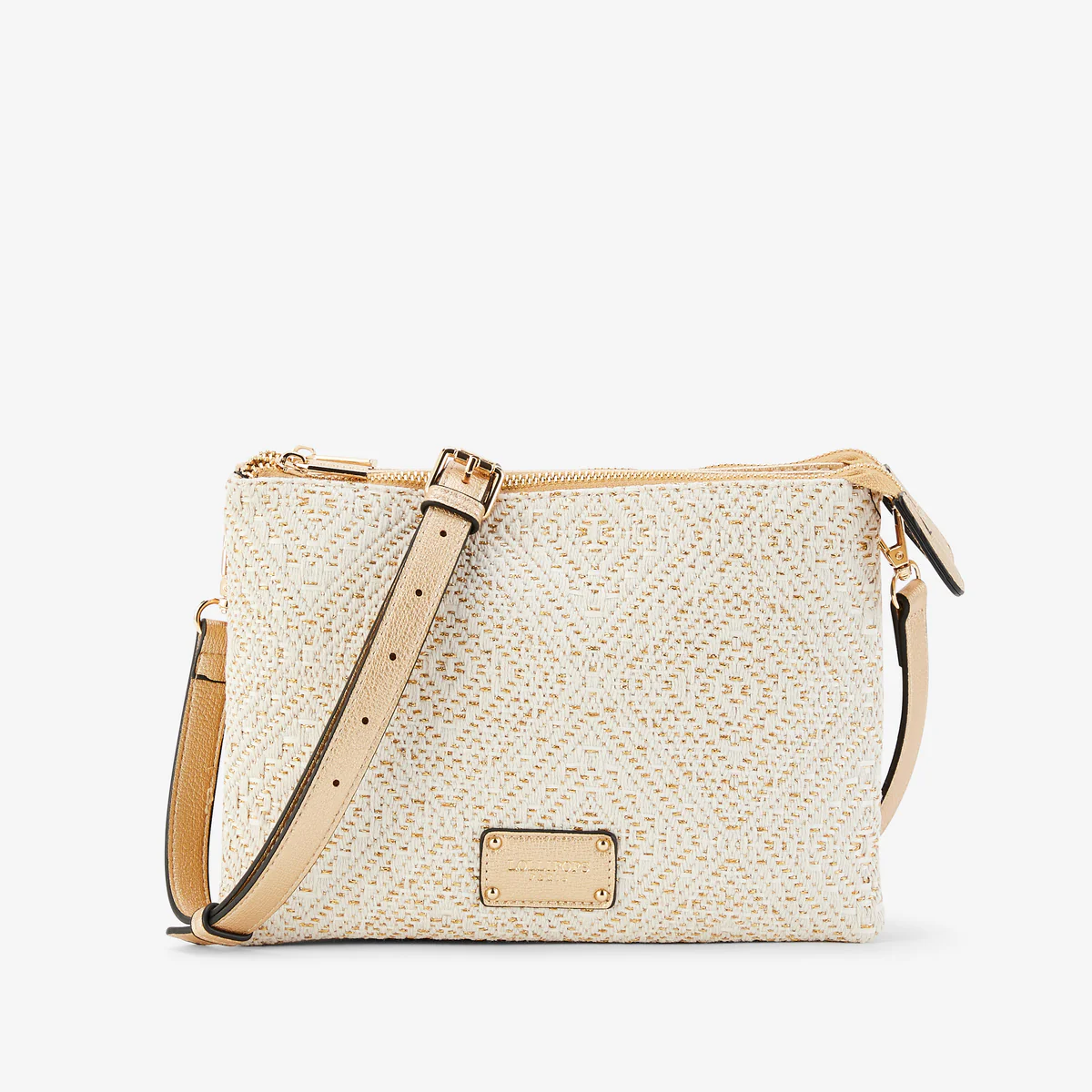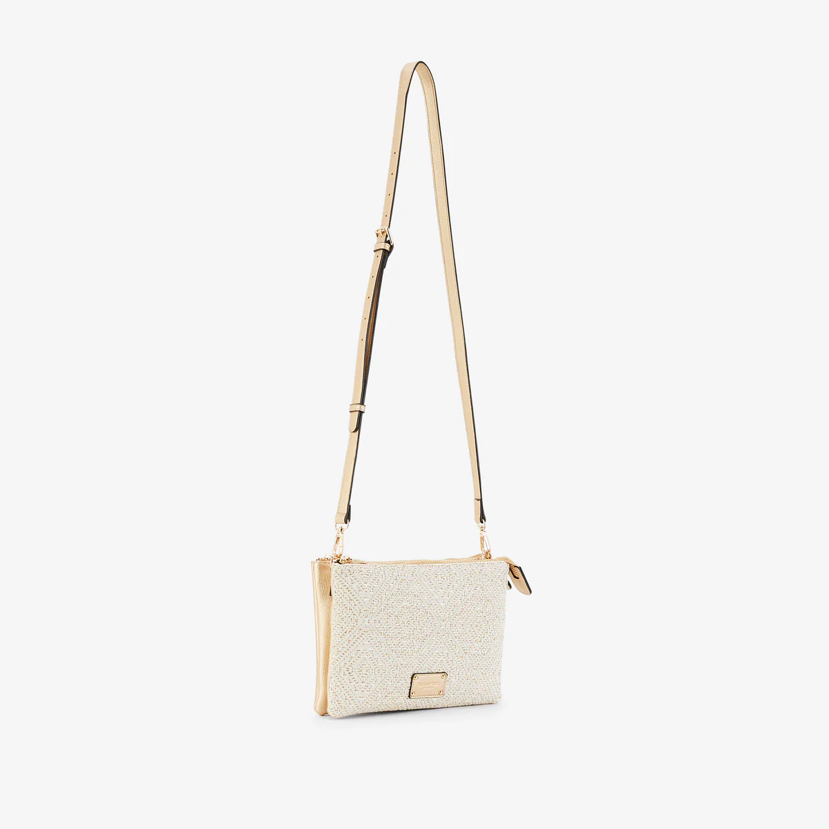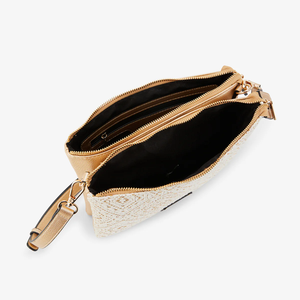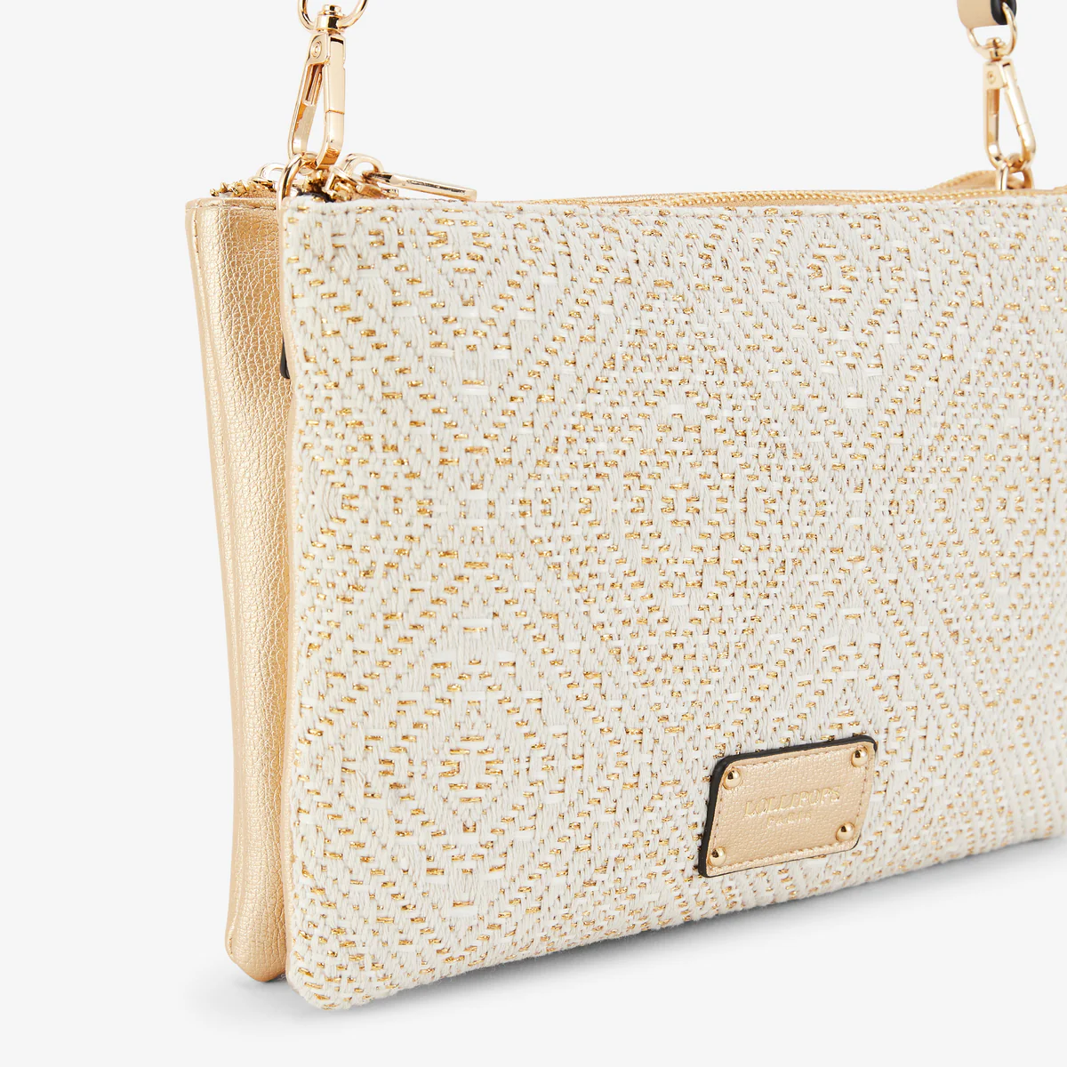 - Sac double pochette doré avec face en paille tressée