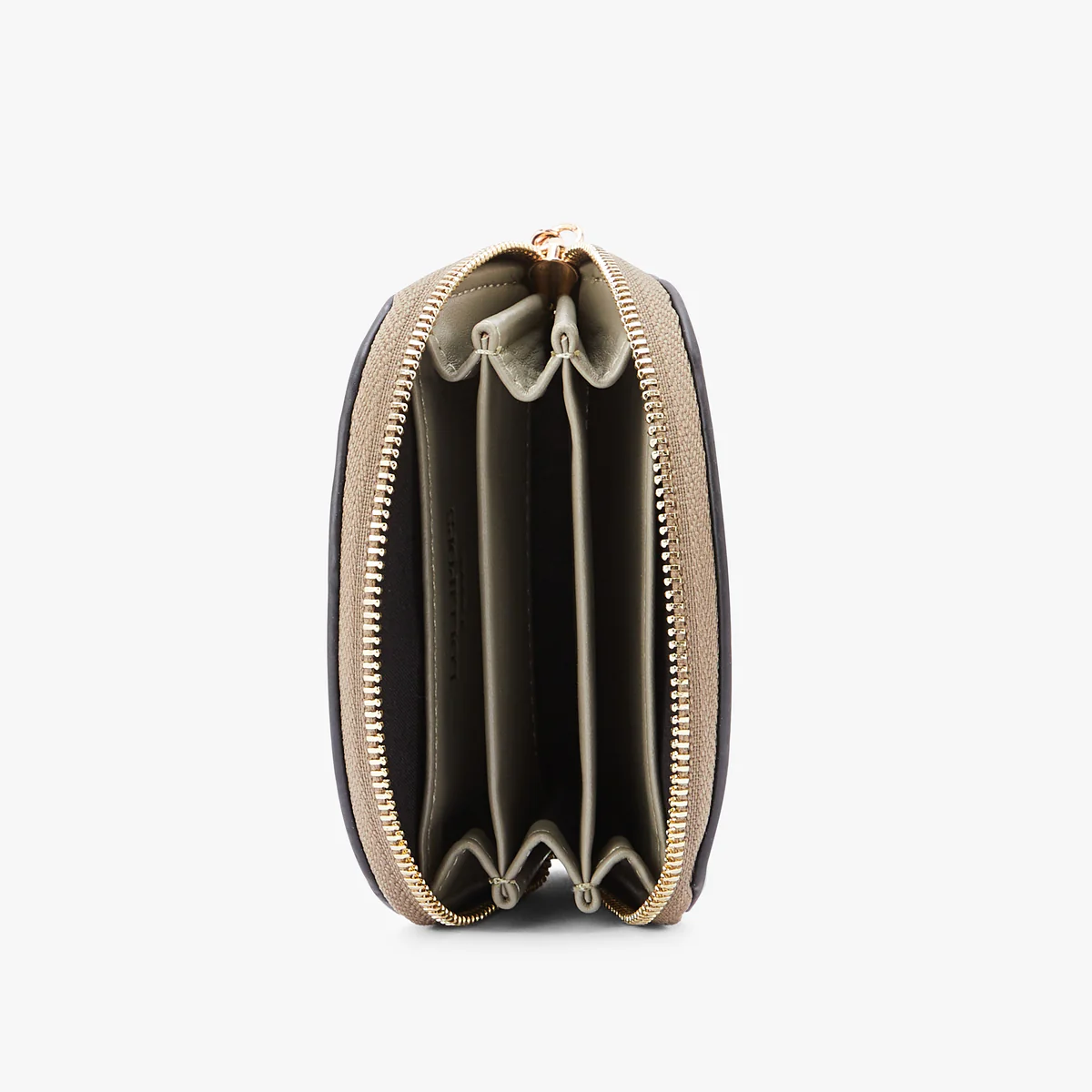 • Porte monnaie kaki en simili cuir grainé à compartiment zippée