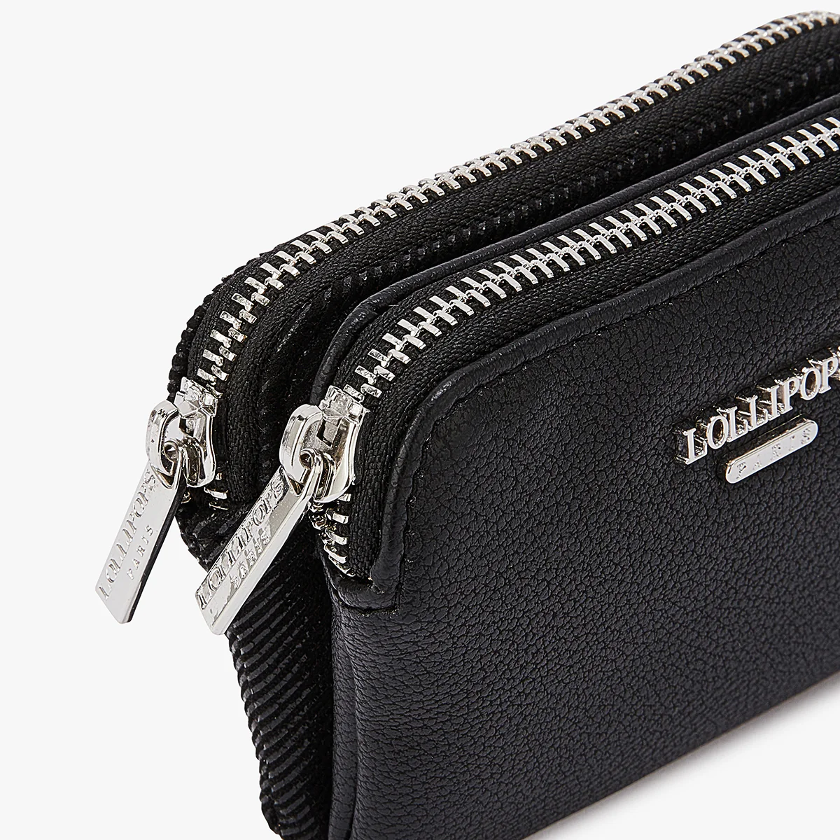 – Bi-matière : en simili cuir effet grainé et en tissu irisé