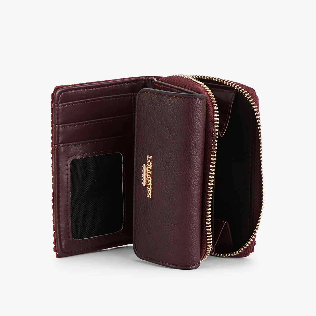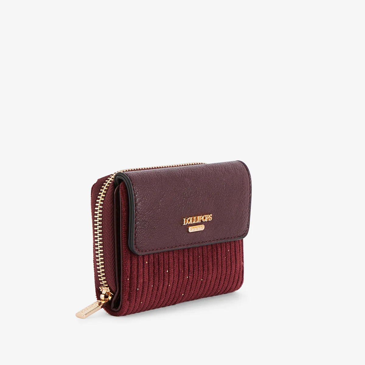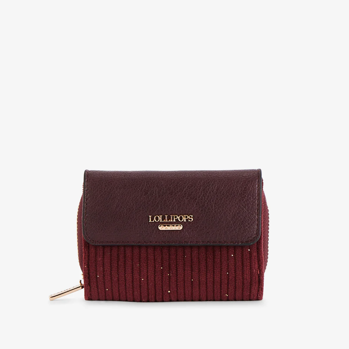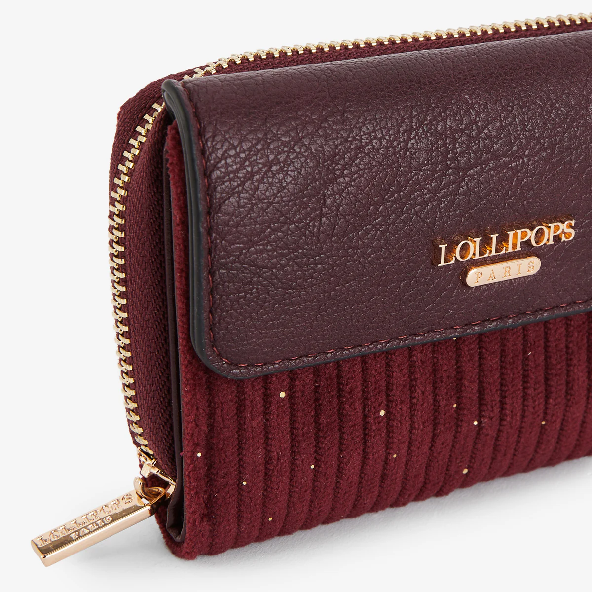 - Portefeuille bordeaux en velours côtelé avec éclats de foil