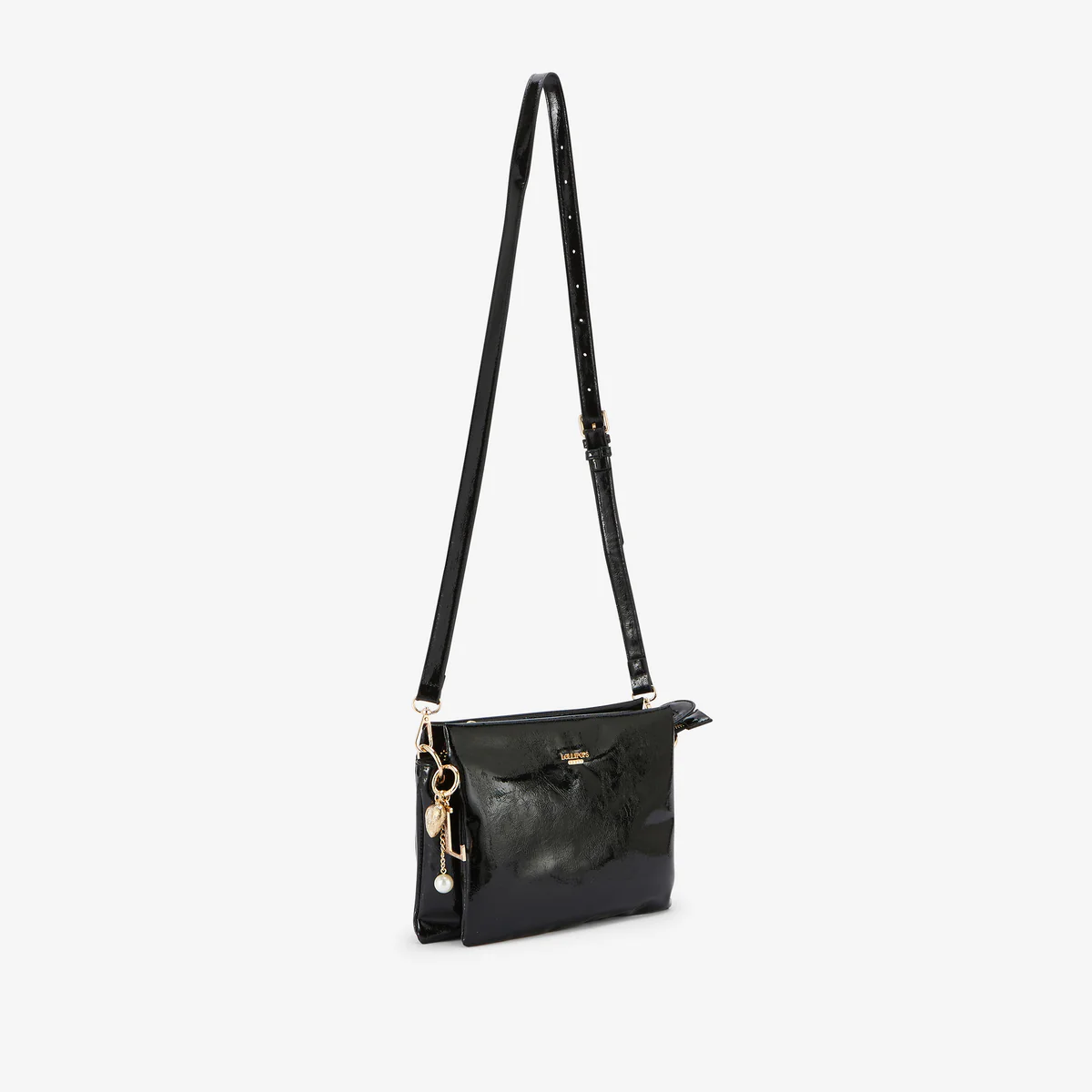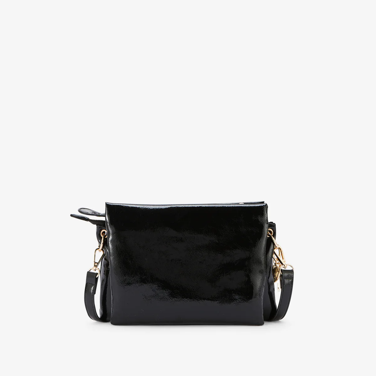 - Sac à bandoulière multi-poches noir en simili cuir vernis