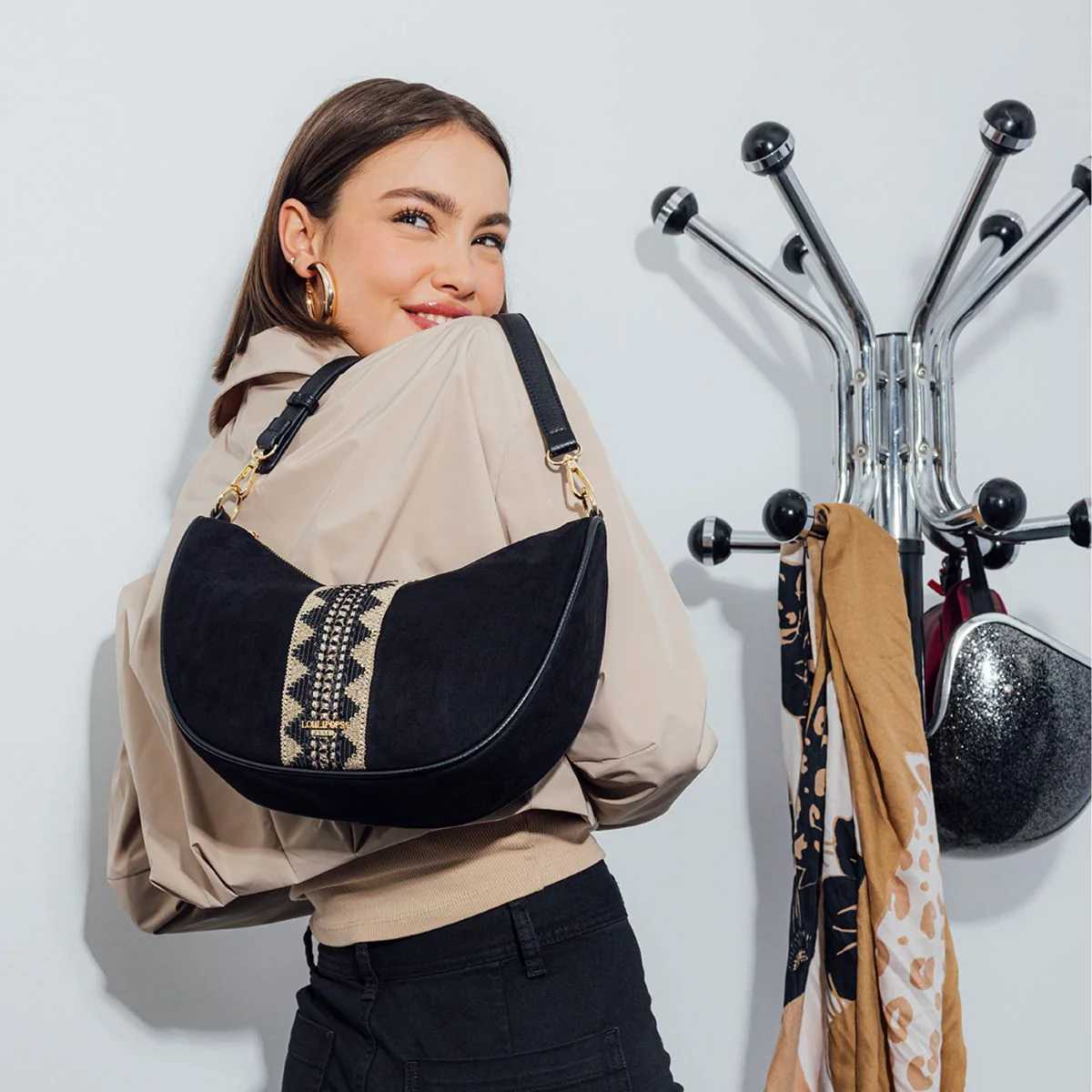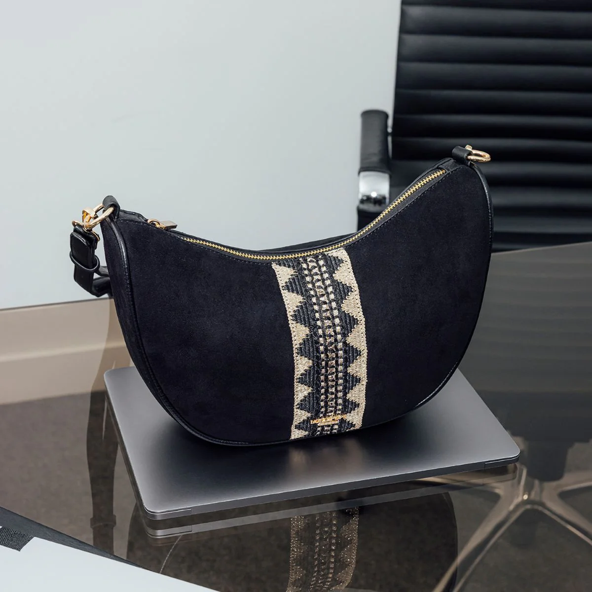 - Sac demi-lune noir en suédine