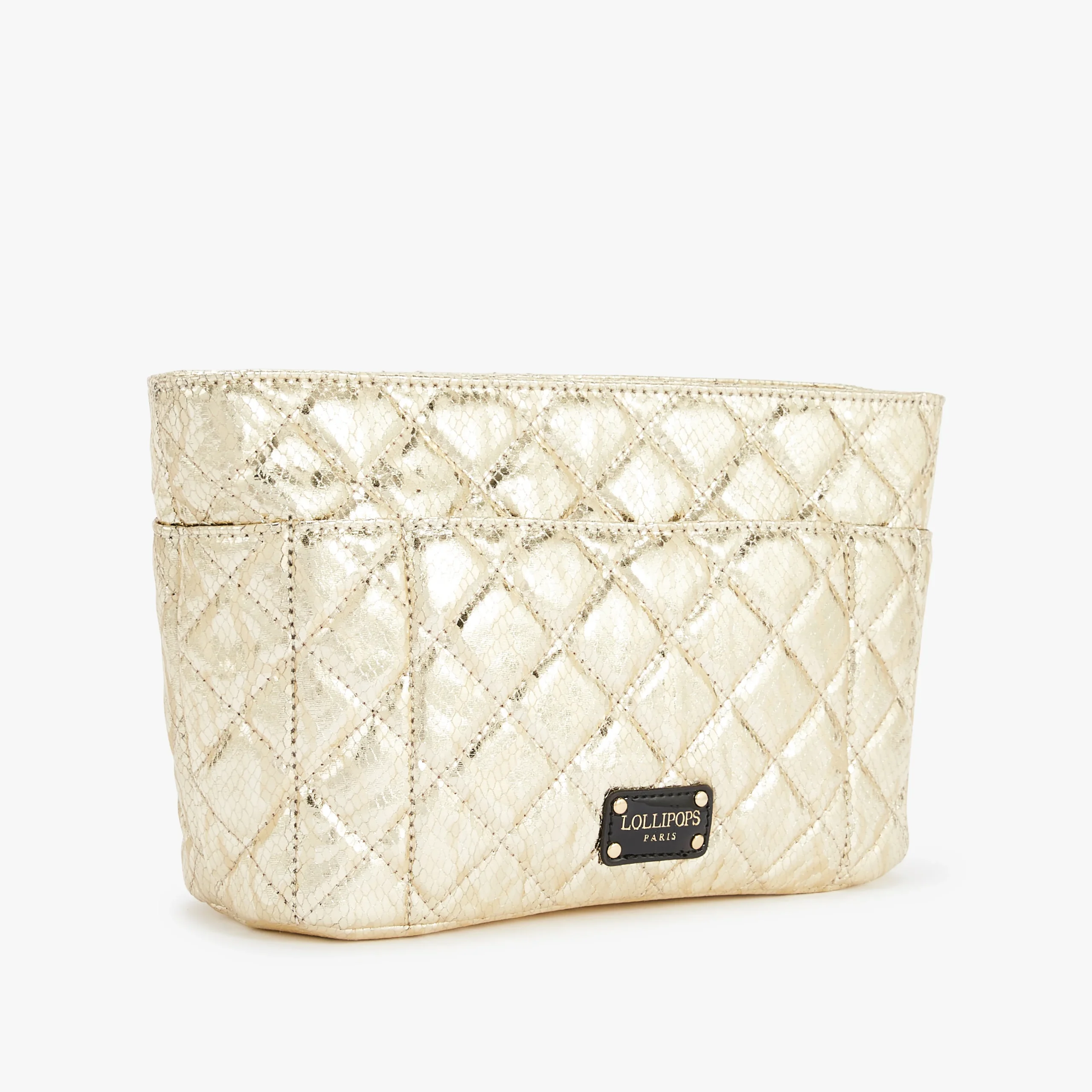 - Trousse de toilette en tissu imprimé exclusif doré avec surpiqûres
