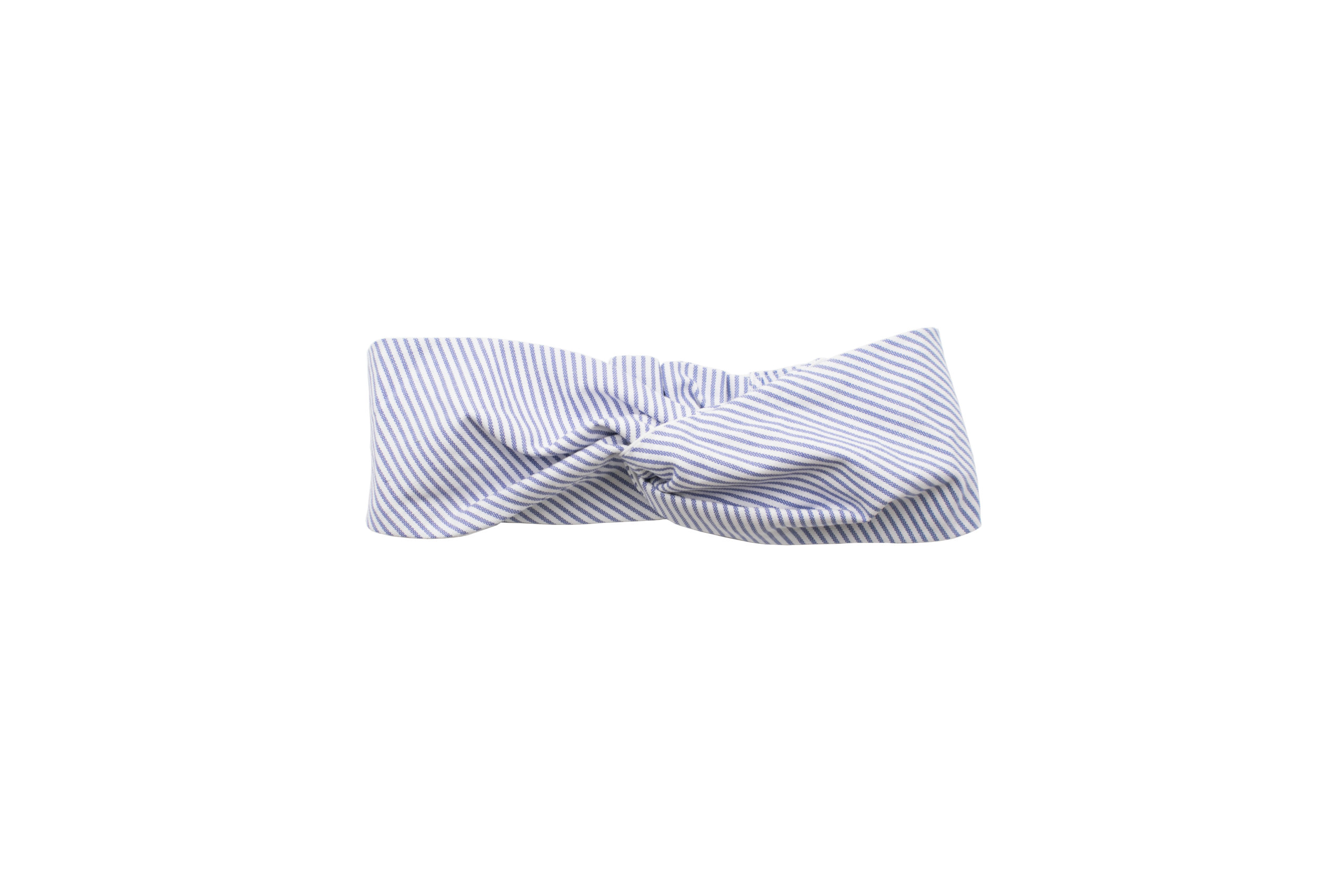 Turban rayé en blanc et gris.