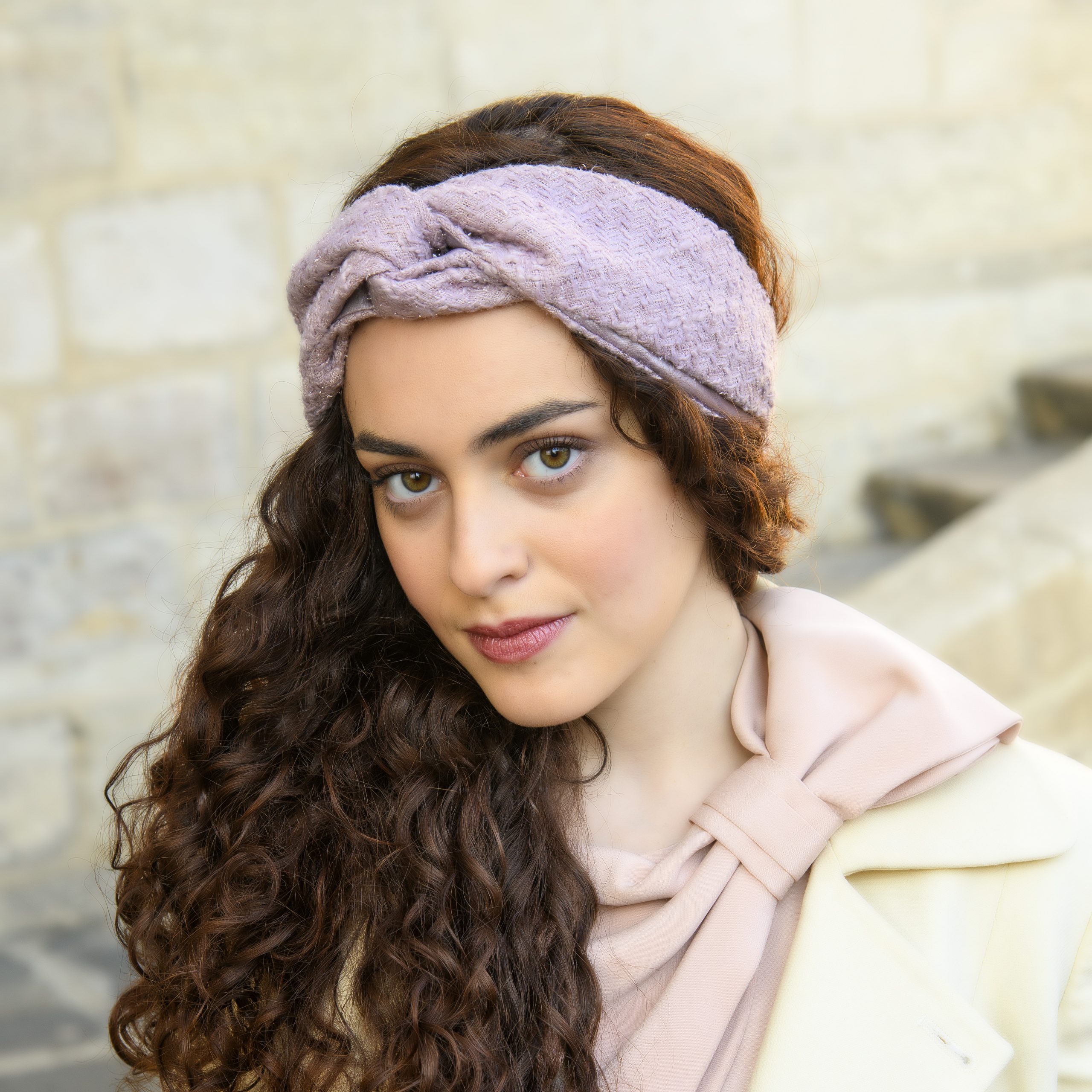 Turban en polyester rose. Made in France
