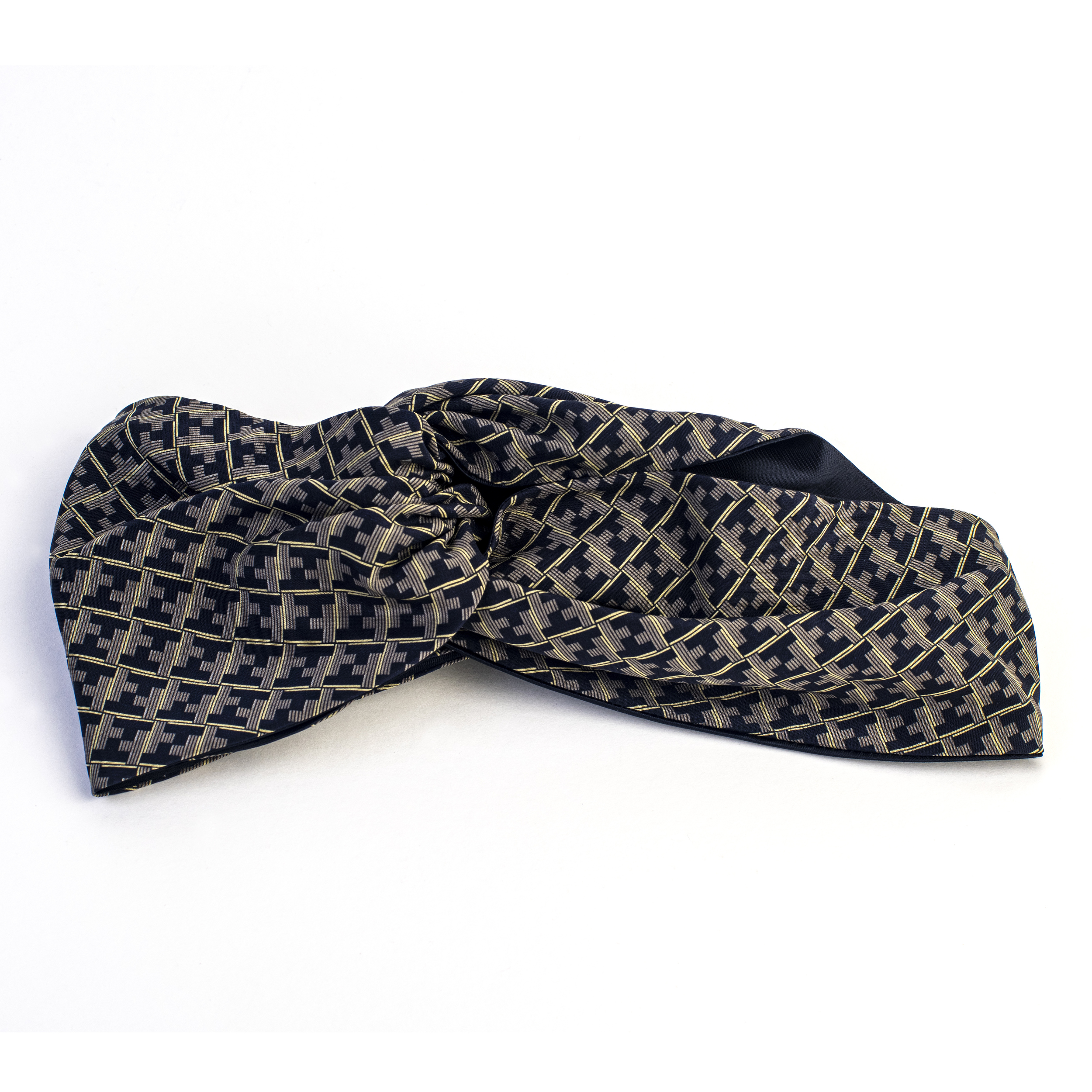 Ce turban mesure 15 centimètres de diamètre. Finition élastique.
