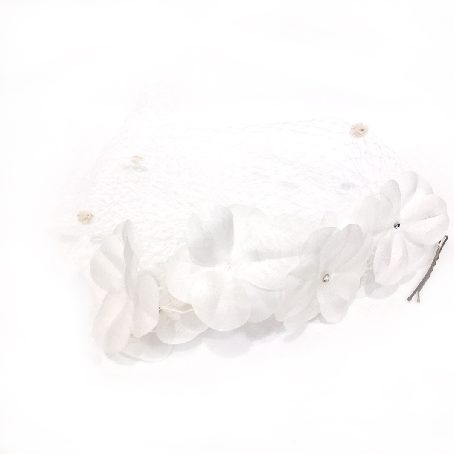 Voilette à mouches blanche, fleurs moyen modèle en pongé de soie et strass hotfix