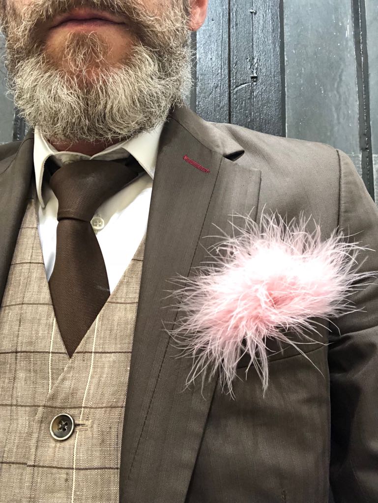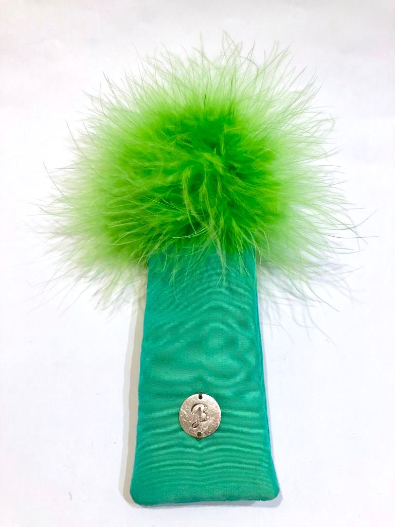 Pochette en taffetas et plumes de Dinde façon Marabout.